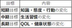 影響評価…内容:知識・身体・行動の変化 プログラムの段階:Check(短期)