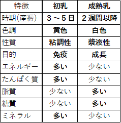 時期(産褥)…初乳:3~5日 成熟乳:2週間以降