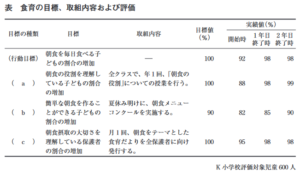 年計画で、「朝食を毎日食べる子どもの割合の増加」を目標とした食育に取り組んでい