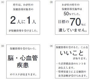 健指導の利用を促すチラシを作成した。ナッジを活用したチラシとして、最も適切