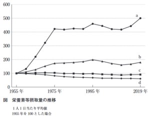 比較に加え、日本人の食事摂取基準を用いた摂取状況のアセスメントを行い、施策立