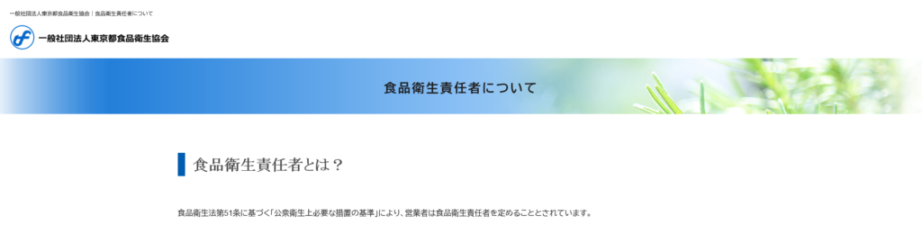 食品衛生責任者試験HP(東京都):https://www.toshoku.or.jp/training/seki-gaiyou.html