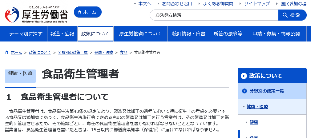 食品衛生管理者試験HP:https://www.mhlw.go.jp/stf/seisakunitsuite/bunya/0000049348.html